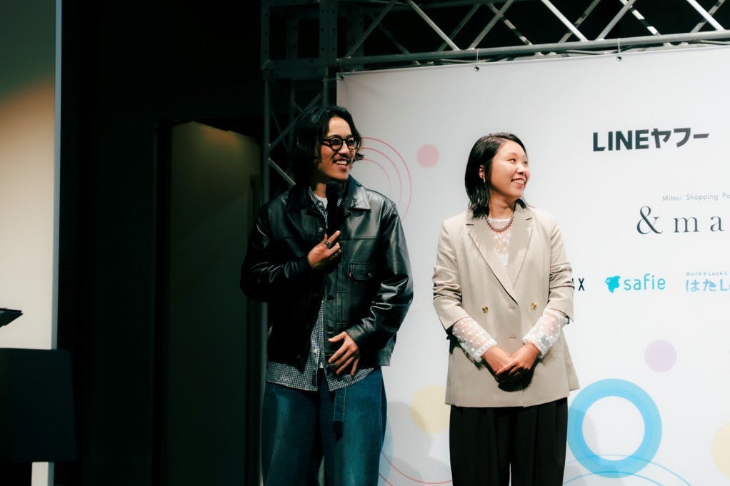 コットンお二人の衣装は、ファイナリストのLevis(リーバイス)のYu-ta(ゆうた)さんとOPAQUE.CLIP(オペークドットクリップ)のyuka(ゆか)さんにコーディネートを組んでいただいたため、お二人にも登壇いただきました。